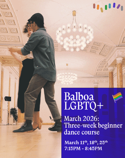 🏳️‍🌈 A three-week Balboa dance course for complete beginners for March 2026. No prior experience required. This is a special LGBTQ+ course, but everyone is welcome. Bring your friends and allies if they also love to dance!